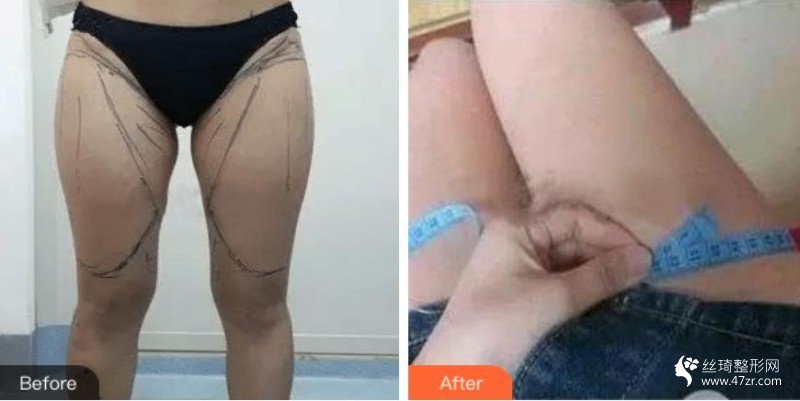 手術(shù)是全麻,所以整個(gè)過(guò)程都沒(méi)有感覺(jué),術(shù)后下床感覺(jué)有點(diǎn)困難,好在醫(yī)院的護(hù)士挺好,盡心盡力的照顧。因?yàn)閯傋隽顺橹?,所以下蹲的時(shí)候很不舒服,用馬桶的話會(huì)好一點(diǎn),蹲下去就不太方便。 醫(yī)生給看了抽出來(lái)的脂肪,很多,紅色的是血水,黃色的就是脂肪,感覺(jué)好惡心。抽出來(lái)很多的,所以腿也是瘦了一大圈的 術(shù)前腿圍有五十多呢,做了大腿抽脂之后穿上塑身褲以量,是4開(kāi)頭的了,終于下了5。因?yàn)樯蠋环奖悖员M量的少喝水,減少上廁所的次數(shù)。 術(shù)后突然能感覺(jué)得到腿上有液體流出來(lái),嚇了一跳,醫(yī)生說(shuō)這是正常的滲液流出。塑身褲是較為緊的那種,可以幫助塑形,即使穿著不舒服,也要堅(jiān)持穿著。