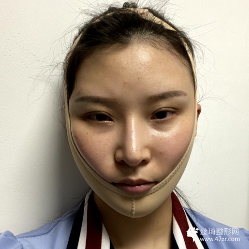 術(shù)后7天:一個星期的時間面部還是有一些腫脹的,但是可以出院了,頭上戴著彈力面罩,醫(yī)生說這樣可以更好的塑形,讓我吃飯的時候要注意吃一些清淡的飲食,避免吃那些辣椒的食物,因為有可能會影響到手術(shù)部位的恢復(fù)。