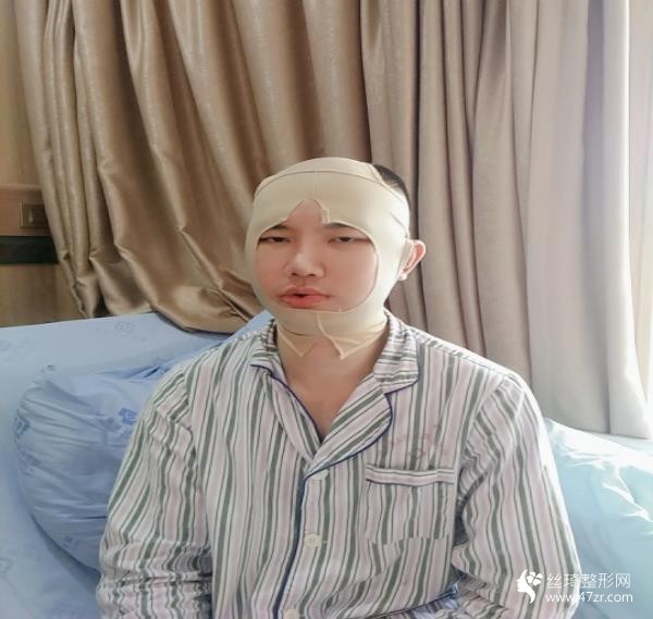 現(xiàn)在是術后的第3天了呢,現(xiàn)在給大家講講我的歷程吧。做完輪廓手術的當天麻藥散了之后有一點痛的,我的那個痛感還是比較明X的,然后當天晚上就是一直都在那個監(jiān)護病房,護士一直都還挺關心的,麻藥反應還挺明X的,然后就是有一點難受, 第二天其實就不怎么痛了,較腫的時候就是現(xiàn)在,腫的眼睛都睜不開,全程還要戴頭套。