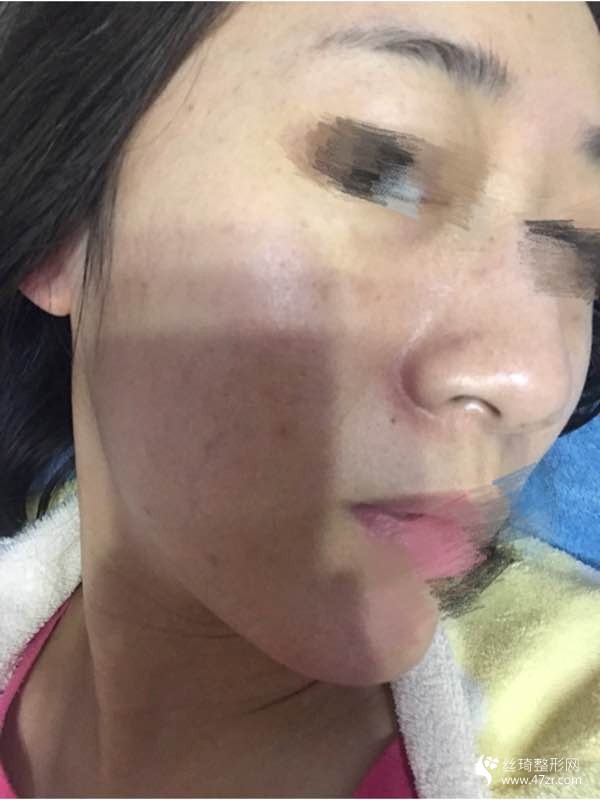 今天是我做完激光美膚激光手術(shù)之后的第8天,哇塞,等了好久終于等到今天,我覺得恢復(fù)的時候真的好慢好慢,慢到不想說話。今天比較無聊,就在家里看電視來著,沒什么事干?,F(xiàn)在差不多密密麻麻的小黑點掉了很多了 大塊的色斑還未完全掉落 斑的情況就顏色來看是減輕了 但是并沒有 可能還要堅持調(diào)節(jié) 。