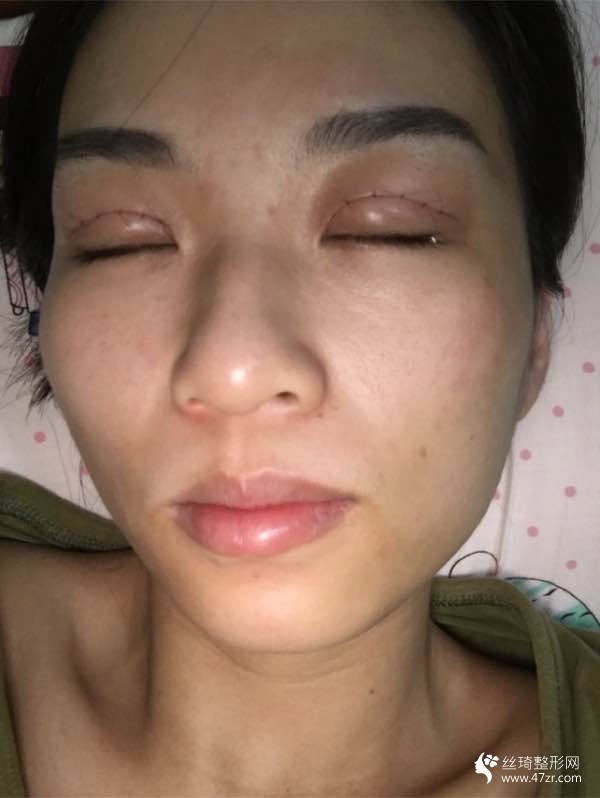 今天是我做完雙眼皮手術(shù)之后的第二天,今天肚肚好餓啊,可是我感覺(jué)今天比平常要餓得早,今天晚上不想做飯了,想出去吃飯了,老是自己在家里做,無(wú)聊死了,真不喜歡。第二天打開(kāi)紗布,好腫啊,嚇?biāo)缹殞毩?,看了下資料,原來(lái)第二天是較腫的,嗚嗚,不敢照鏡子了。
