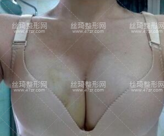 手術(shù)抽的是大腿脂肪,然后填充的胸部。剛做完的時(shí)候,我覺(jué)得自己的胸部特別大。手術(shù)后第二天,我嘗試走路,胸部已經(jīng)不怎么難受了。就是胸上都是青青紫紫的。