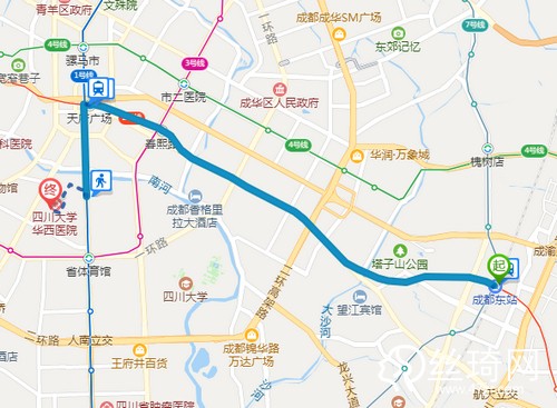 3、成都東站乘6站,坐地鐵7號線(大觀方向)到火車南站,向東步行120米到火車南站,乘4站地鐵1號線(韋家碾方向)到華西壩A口出站,向西步行1.2公里到四川大學(xué)華西醫(yī)院第二住院大樓-燒傷整形科。