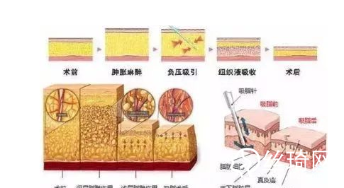 抽脂手術(shù)開始時,首先將一瓶特別配制的透明液體,注入患者的吸脂部位,該部位很快膨脹起來,它有兩個作用:一是進行局部麻醉,麻醉時間越長,鎮(zhèn)痛果越好;另一是使脂肪細胞體積膨脹,繼而變成液化狀態(tài),使導(dǎo)管可將其方便地吸出體外,它使手術(shù)的出血量明X減少。